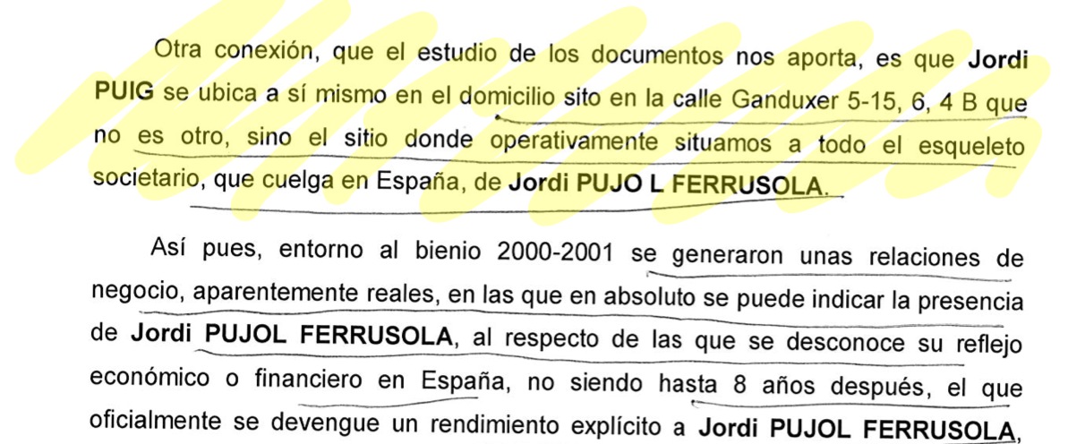 Según la descripción policial, Jordi Puig es quien figura en las escrituras operaciones realizadas desde Gabón con la empresa Isolux a partir del año 2000 para instalar líneas de distribución eléctrica con la participación de la empresa Ibadesa Cat. Jordi Pujol aparece mencionado como director de esa empresa catalana aunque no figura en ningún registro como tal. La UDEF sugiere que Puig podría haber cobrado en nombre de Pujol puesto que la documentación de la empresa «no permite establecer contacto alguno con Jordi Puig». Entre los indicios de esa conexión que señala la UDEF se encuentra la coincidencia de domicilios entre ambos investigados. De hecho, Jordi Puig «se ubica a sí mismo en el domicilio sito en la calle Ganduxer 5-15, 6, 4B que no es otro, sino el sitio donde operativamente situamos a todo el esqueleto societario que cuelga en España de Jordi Pujol Ferrusola», concluye la investigación.