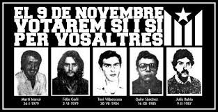 La campanya «Votarem per tu«, en al·lusió a una espècia de comunió mísitica amb els catalanistes morts, ha acabat en apologia del terrorisme. Exemple d’això és aquest cartell en el qual s’anuncia que es votarà per terroristes de Terra Lliure morts.