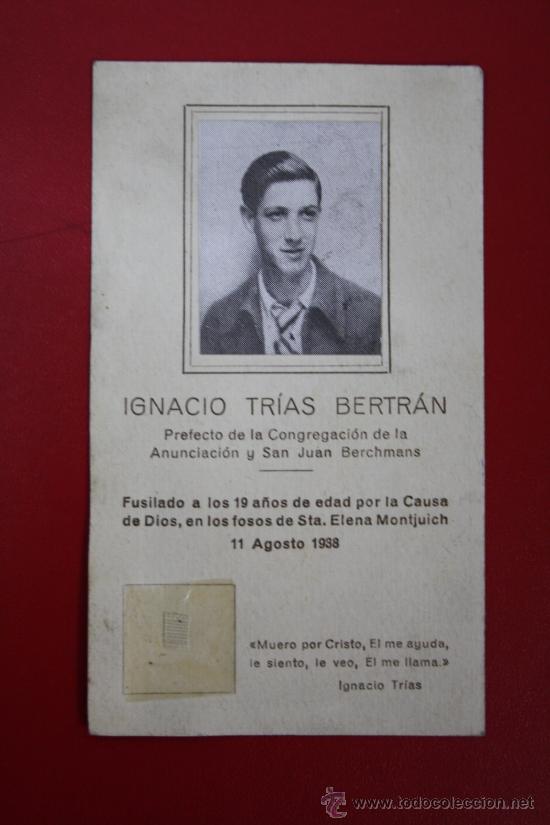Se presenta ante el padre jesuita de las Congregaciones Marianas con estas credenciales: Soy Ignacio Trías Beltrán, primo del padre Trías, jesuita. En Canarias fui de la Congregación de la Inmaculada y San Juan de La Salle. He pedido permiso a mamá para ser congregante y me lo ha concedido, pero como somos diez hermanos, yo no podría serlo si la cuota fuera muy crecida.