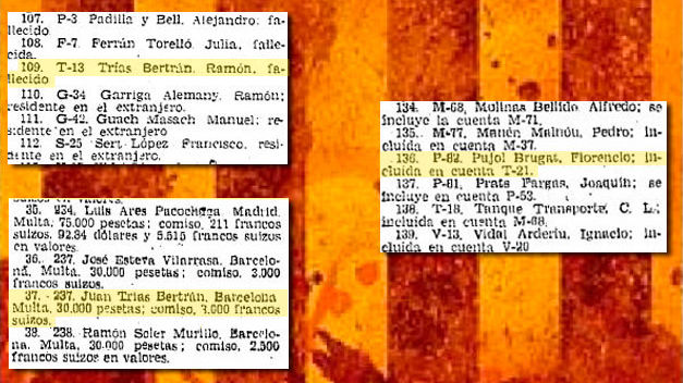 Además, en el listado publicado hace ahora 54 años aparece también el tío carnal del alcalde barcelonés, Ramón Trías Bertrán. En este caso no se abrió procedimiento judicial porque se encontraba fallecido.