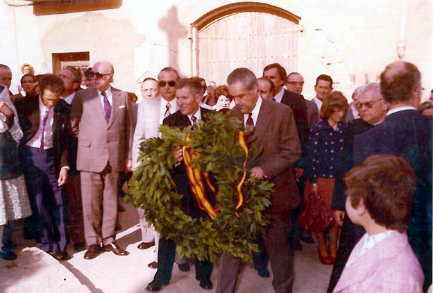 l’alcalde de Solivella, Antoni Bergadà, i el governador civil de Tarragona, Antoni Aigé Pascual (any 1974).