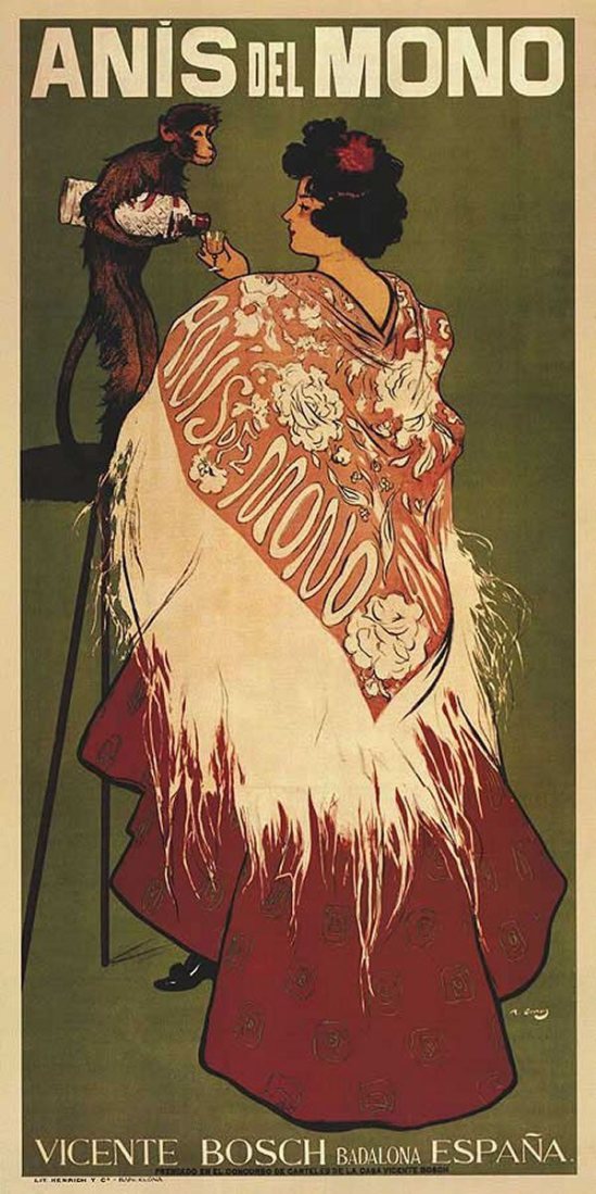 En 1898 Vicente Bosch convoca un concurso de carteles para par a conocer su producto, llevándose el primer premio el famoso pintor catalán Ramón Casas con el cartel “mono y mona”.