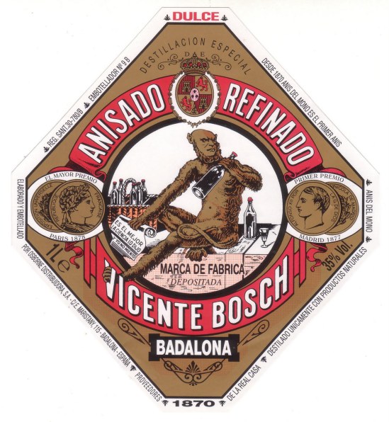 El 14 de marzo de 1892, Vicente Bosch y su hermano José registran la marca de «Anís del Mono». Uno de los productos que elaboraban en su exitosa fábrica de licores de Badalona. En un viaje a París, en la plaza Vandôme, quedó encantado con la forma de corte adiamantado de un frasco de perfume que regaló a su mujer y la adaptó a su botella de anís, pidiendo los derechos al perfumista y registrándola como marca gráfica el 29 de diciembre de 1899.