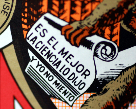 Para empezar, el personaje no se puede clasificar, en rigor, entre los monos. Se halla en un proceso de metamorfosis lo bastante avanzado entre primates y hombres como para atribuirle la pretensión de resumir por sí solo la teoría del evolucionismo, ferozmente rechazada en aquel tiempo. De acuerdo con el análisis iconográfico más superficial hay que considerarlo, sin duda, un diseño plenamente positivista y, en este sentido, políticamente revolucionario si tenemos en cuenta el contexto sociocultural de la época. Y decimos esto porque no se limita a caricaturizar un tema científico de actualidad polémica, sino que toma partido -¡y de qué modo!- a favor del darwinismo militante, es decir, del progresismo que representaban una serie de fuerzas opositoras muy heterogéneas: republicanos y federales, positivistas, anticlericales y anarquistas, etc.»