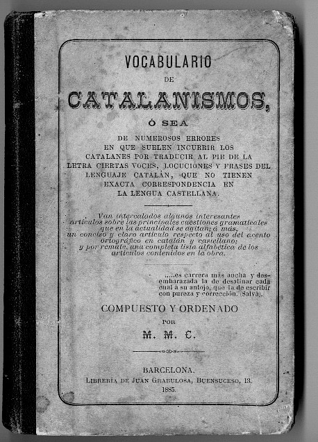 La proximidad lingüística entre el catalán y el castellano y el frecuente contacto entre sus hablantes hace que existan numerosas contaminaciones mutuas. El castellano experimenta la atracción de muchas formas catalanas, cuya traducción literal o adaptación es objeto de las iras de nuestro autor: «Los catalanes, por lo general, al hablar y escribir la hermosa lengua castellana, incurren con frecuencia en crasísimos errores». En el prólogo se escribe: «Confiamos en que [esta obra], a lo menos, será una piedra más en el dique que tiempo ha viene oponiéndose al impetuoso torrente de CATALANISMOS que desgraciadamente está desbordándose en nuestra Cataluña».