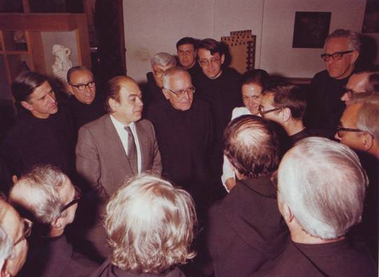 Visita de Jordi Pujol a Montserrat el 28 de junio de 1980, recién elegido President de la Generalitat. Marc Taxonera, con gafas de montura de pasta color negro, mira a la cámara