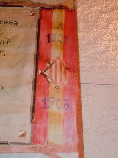 Lazo de bandera española con cuatro barras, de la conmemoración del primer centenario de la batalla del Bruch. Actualmente se conserva el la población de El Bruch.