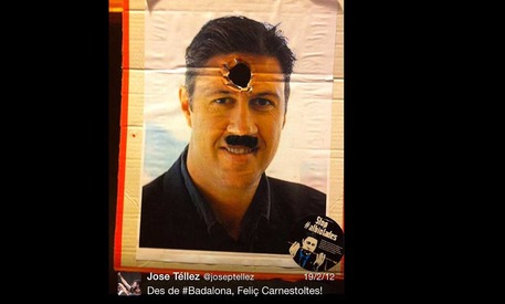 En un twitter, Téllez, ha adaptado la imagen de Albiol a la de Hitler y -lo más grave- con un agujero en medio de la frente, simulando un disparo.