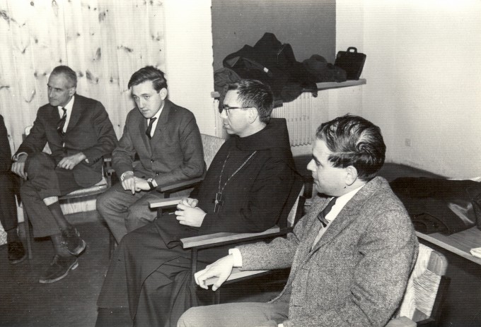 L’Abat Cassià, Pujol, Cahner i Badia i Margarit durant un consell de redacció de Serra d’Or als anys seixanta | Foto Arxiu Serra d’Or. Quan ser antifranquista sota el paraigües de l´Església era ben fàcil.