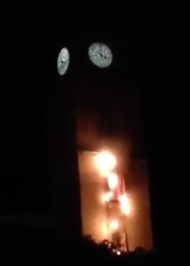 El campanar de Llorenç ha aparegut amb la bandera catalana cremada. Foto: Baix Penedès per la Independència