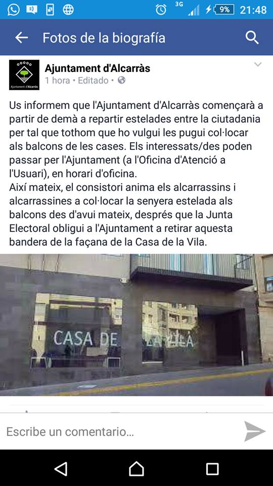 El Ayuntamiento de Alcarràs reparte esteladas gratis: malversación de fondos, punible. Por Somatemps el 3 septiembre, 2015 • ( 1 ) Comparte esto: Haz clic para compartir en X (Se abre en una ventana nueva) X Haz clic para compartir en Telegram (Se abre en una ventana nueva) Telegram Haz clic para enviar un enlace por correo electrónico a un amigo (Se abre en una ventana nueva) Correo electrónico Haz clic para compartir en Facebook (Se abre en una ventana nueva) Facebook Haz clic para compartir en WhatsApp (Se abre en una ventana nueva) WhatsApp Haz clic para compartir en LinkedIn (Se abre en una ventana nueva) LinkedIn Haz clic para imprimir (Se abre en una ventana nueva) Imprimir Me gusta Cargando...‹ ¿Por qué los independentistas nunca abandonarían el pasaporte español?Lluis Llach: ‘Estic encantat d’anar amb Mas per fer la independència … però no el votaré mai més’ ›Categorías:POLÍTICA