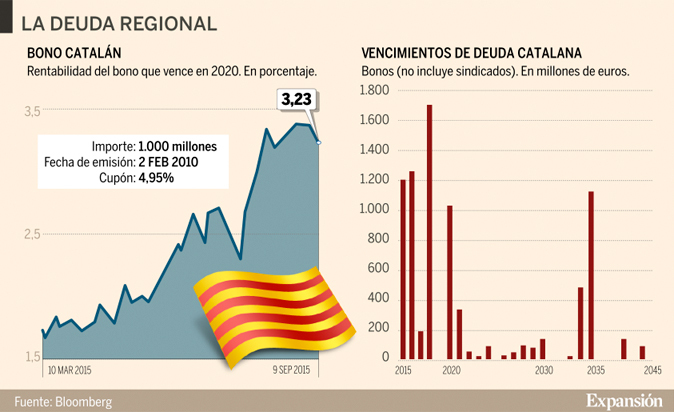La fecha de las elecciones catalanas coincide casi con la de uno de los mayores vencimientos de deuda que afronta la Generalitat en los últimos años. El próximo 15 de septiembre, es decir, sólo doce días antes de que los catalanes tengan que acudir a las urnas, tiene que repagar un bono que se colocó en 2005 a un plazo de diez años, por importe de 1.074,78 millones de euros.