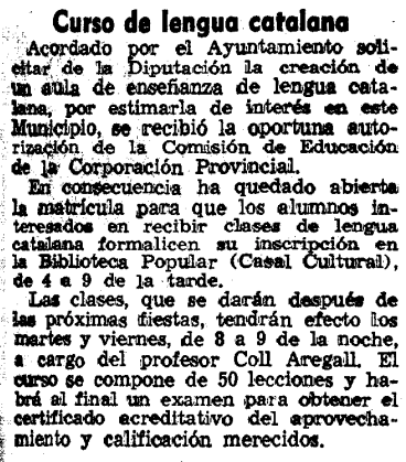 La Vanguardia, anunciaba en 1967 Cursos de catalán durante el franquismo. ¿Les pilló de baja el censor? Iker Jiménez plantea dedicarle un programa entero a este fenómeno en Cuarto Milenio.