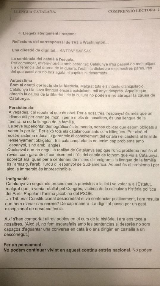 Entre otras lindezas habla de aniquilación del catalán y tacha de inmigrantes a las familias que vinieron a Cataluña desde el resto de España.