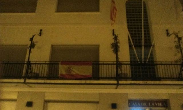 Los antiidependentistas que instalaron la insignia nacional también lo hicieron en la Casa de la Villa local donde sólo ondea la bandera catalana por decisión del gobierno local. Como puede verse en la fotografía, la instalaron en el balcón del ayuntamiento gobernado por CiU.