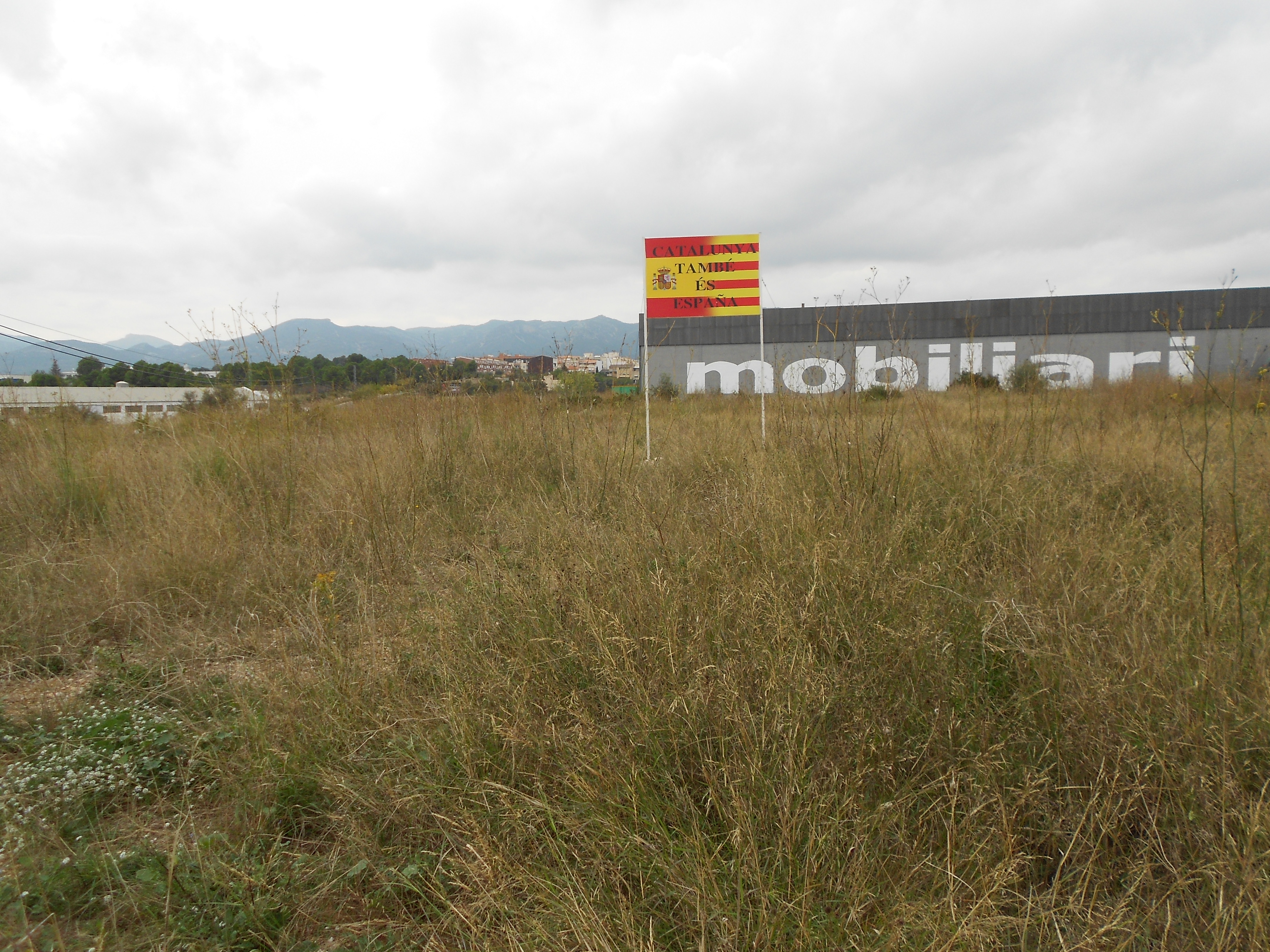 La Sènia es una población al sur de la provincia de Tarragona. Importante por sus fábricas de muebles. En la entrada de esta población aparece la curiosa pancarta de las fotos. Están representadas la bandera de Cataluña, la bandera de España, y el escudo de España.
