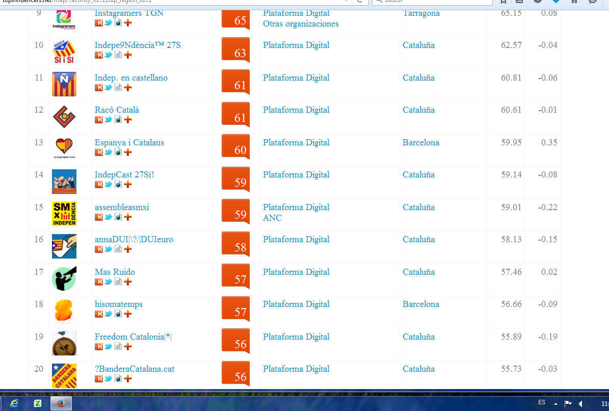 Hay muchas aplicaciones que intentan medir la influencia de las plataformas digitales. Según días y semanas las posiciones van variando. Se utilizan parámetros como las veces que se recomiendan, reenvían etc… En esta, esta semana estamos en el lugar 18. Todo un éxito, para nuestra pequeña organización.