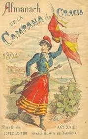 En plena debacle ultramarina, se abrió otro frente que constituyó la guerra de Melilla (1893-1894), también conocida como la Guerra de Margallo o Primera Guerra del Rif. Cataluña se volcó una vez más en el envite africano. Un ejemplo del entusiasmo patrio que despertó esta breve contienda, es la portada del semanario satírico, republicano y anticlerical La Campana de Gracia. En el Almanaque de 1894 la portada representa a una mujer que en sus faldas porta las cuatro barras catalanas, y en una mano la bandera española y en la otra un fusil.