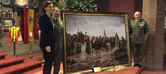 La noche del 7 al 8 de diciembre de 1585 el Tercio de Zamora, al mando del Maestre Bobadilla, consiguió una victoria imposible frente a la escuadra holandesa. Abriendo los diques de los ríos Mosa y Waal, los holandeses habían inundado los campamentos del Tercio, quedando el montecillo de Empel convertido en una pequeña isla. Un soldado español, mientras cavaba una trinchera, encontró una tabla con la Inmaculada. Bobadilla entendió el hallazgo como un signo providencial, que al menos levantaría el ánimo de sus empapadas y hambrientas tropas. Esa madrugada, un viento gélido heló las aguas que cercaban a los españoles. Los infantes atravesaron el hielo y atacaron por sorpresa a la escuadra holandesa, derrotándola. “Se diría que Dios es español” se lamentaba el almirante enemigo. Aquella jornada se conoce como “el milagro de Empel” y el pintor de batallas Ferrer Dalmau la ha plasmado en un lienzo que recoge la procesión de la Inmaculada entre el castigado Tercio.