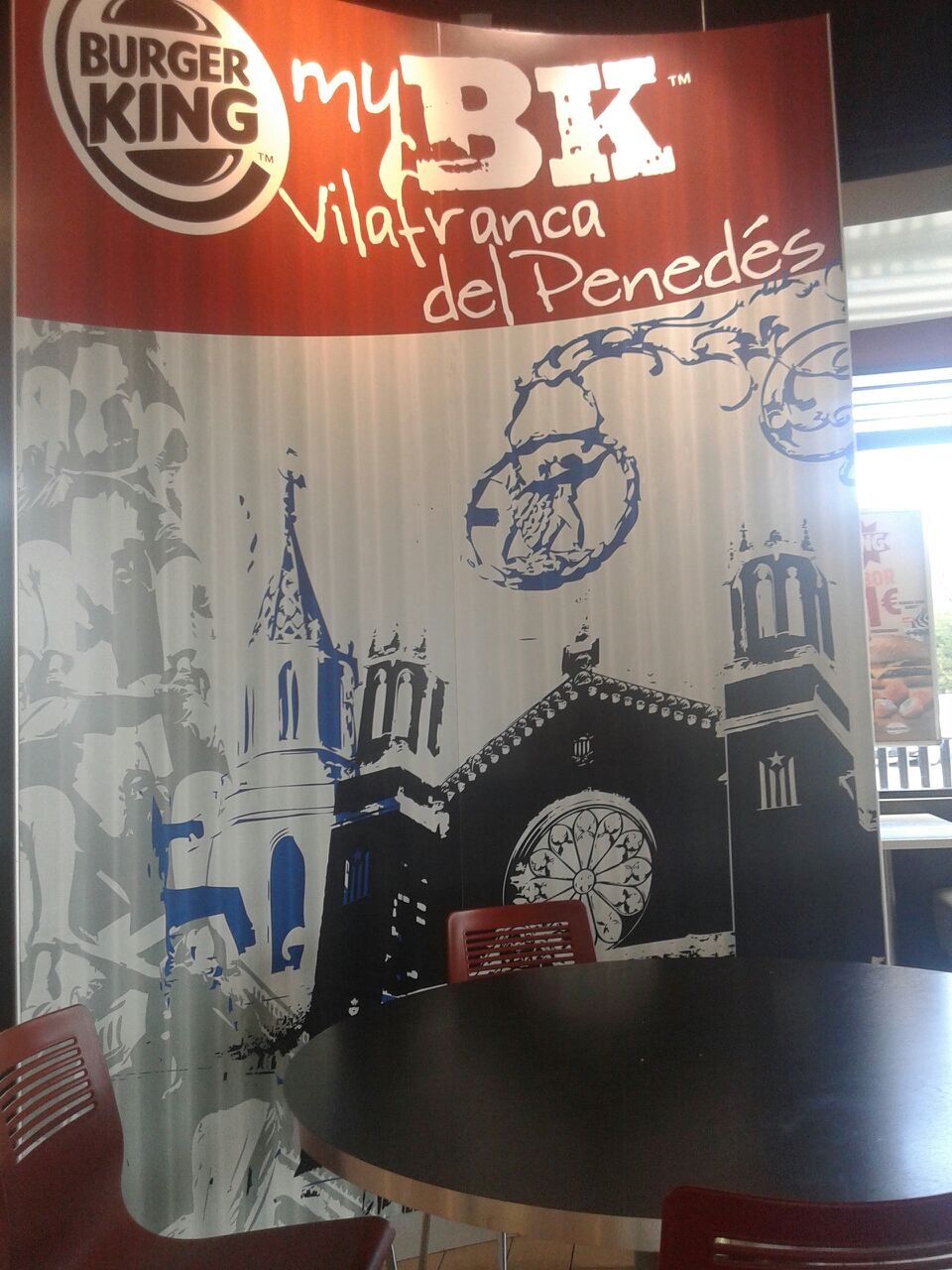 Ya es hora de empezar a reclamar neutralidad en los comercios o bien, dejar de acudir a ellos. En el decorado de este Burguer de Vilafranca del Penedés, se puede ver la estelada pintada en la pared, colgando del campanario.