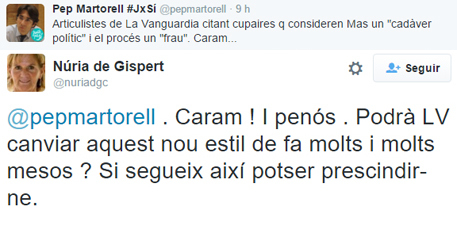 A més s’ha preguntat si La Vanguardia podrà “canviar aquest nou estil de fa molts i molts mesos”. “Si segueix així potser prescindir-ne”, ha reblat.