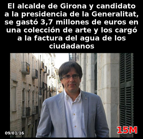 La historia comenzó cuando Carles Puigdemont propuso comprar la colección de cuadros del crítico de arte fallecido , Santos Torroella. Dijo Puigdemont que tener esta colección (con obras de Picasso, Dalí y Miró) supondría «una oportunidad de desarrollo económico». Pero la propuesta encontró un enorme rechazo ciudadano. El 15 de marzo de 2014 mientras se votaba la propuesta en el pleno, miembros de la PAH y la Red de Derechos Sociales se manifestaron a las puertas del ayuntamiento: “No tenemos casa para colgar cuadros», gritaban.