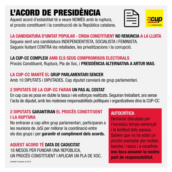 Els cupaires afirmen que “la CUP manté el seu grup parlamentari sencer amb 10 diputats i diputades” i deixa clar que “cap diputat canviarà de grup”. En aquest sentit, expliquen que “dos diputats garantiran el procés constituent i la ruptura”.
