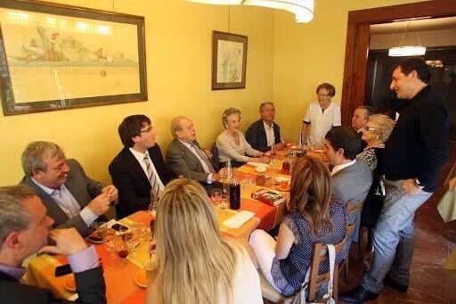 Nos hacen llegar la comida entre amigos entre el ya flamante «fraude democrático», Carles Puigdemont, nuevo presidente de la Generalitat.