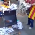 (vídeo) ¿Paz?: separatistas rompiendo todos los carteles de la «mani» que estaban en castellano