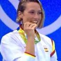 La catalana Mireia Belmonte se emociona escuchando el himno nacional