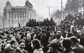 Ciudadanos celebran la liberación de Barcelona el 27 de enero de 1939. |Cordon Press