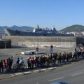 Hasta cinco horas de espera en Guecho para poder entrar en el portaviones insignia español