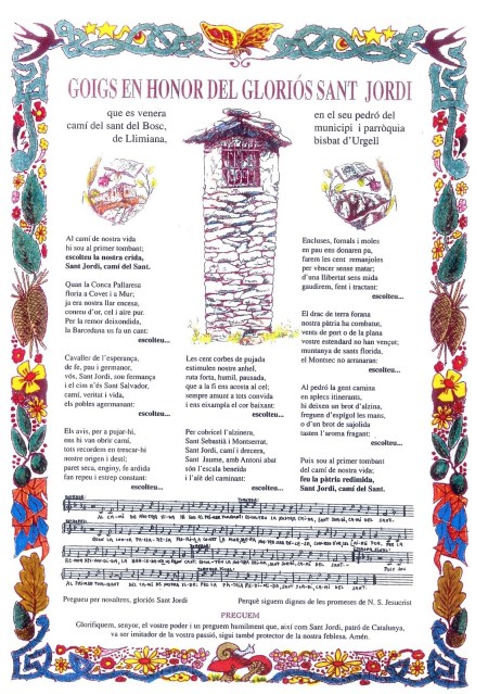 GOIGS EN HONOR DEL GLORIÓS SANT JORDI QUE ES VENERA EN EL SEU PEDRÓ DEL CAMÍ DEL SANT DEL BOSC, MUNICIPI I PARRÒQUIA DE LLIMIANA, BISBAT D’URGELL.