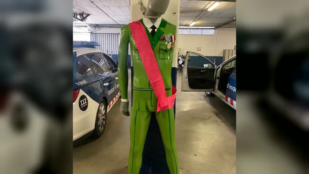 Los Mossos d’Esquadra buscan a un agente del cuerpo por fotografiar un muñeco del Jefe del Estado ahorcado en el aparcamiento de una comisaría de Gerona. Se trata de una figura que una patrulla de Trànsit había retirado a primera hora de la mañana del radar del que colgaba en la C-65 a la altura de Cassà de la Selva.