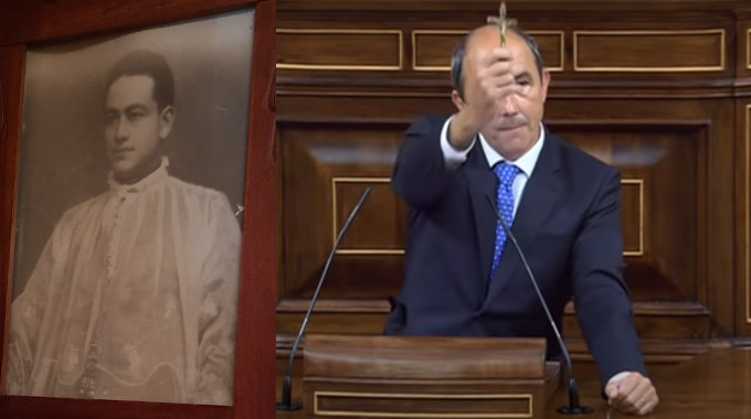 El diputado de Vox, el catedrático Francisco José Contreras, tuvo recientemente un gesto sin precedentes en el Congreso, sacó de su bolsillo el crucifijo que llevaba su tío abuelo, el sacerdote Rafael Contreras Leva cuando fue asesinado el 29 de julio de 1936 a los pocos días de comenzar la Guerra Civil Española y que pronto será beatificado. “Fue despedazado con un hacha”, precisó Contreras.