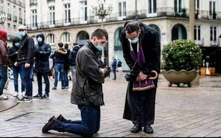 En Francia la propiedad de las iglesias es del Estado. Y la Iglesia mera usufructuaria. Cosas de la post-revolución francesa. Desde hace meses, la Iglesia católica está plegada al designio del Estado de impedir el culto or cuestiones «sanitarias». Eso ha llevado a que los católicos franceses hallan iniciado protestas para que se reabran los lugares de culto. Además, los católicos han recurrido a otra forma de manifestar su fe. Esta foto está tomada en Nantes, donde los jóvenes van a confesarse en plena calle. Todo un testimonio de fe y fidelidad a su tradición.