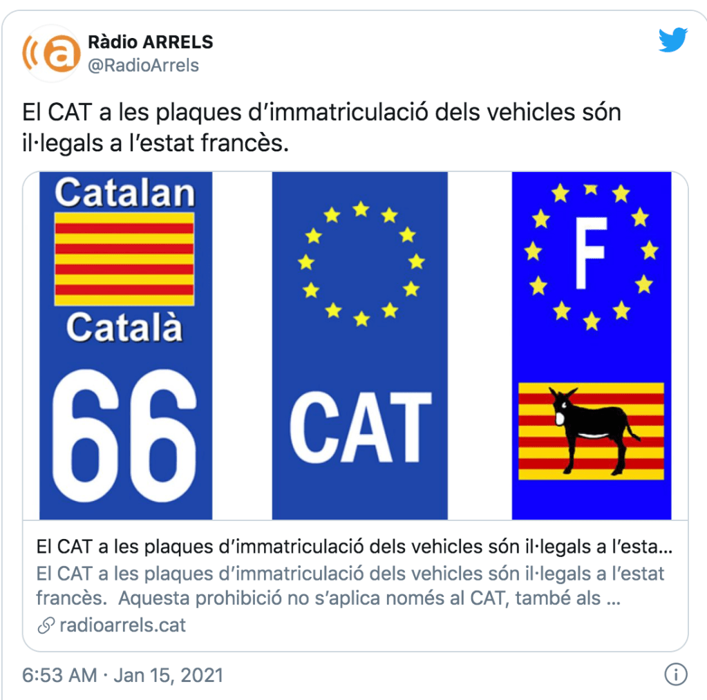 La Corte de Casación francesa ha prohibido el uso del CAT en las matrículas francesas, que era una práctica muy habitual en la mal llamad «Catalunya Nord».Junto con el CAT, también se ha prohibido la inclusión en la matrícula de otros elementos, como la bandera catalana.