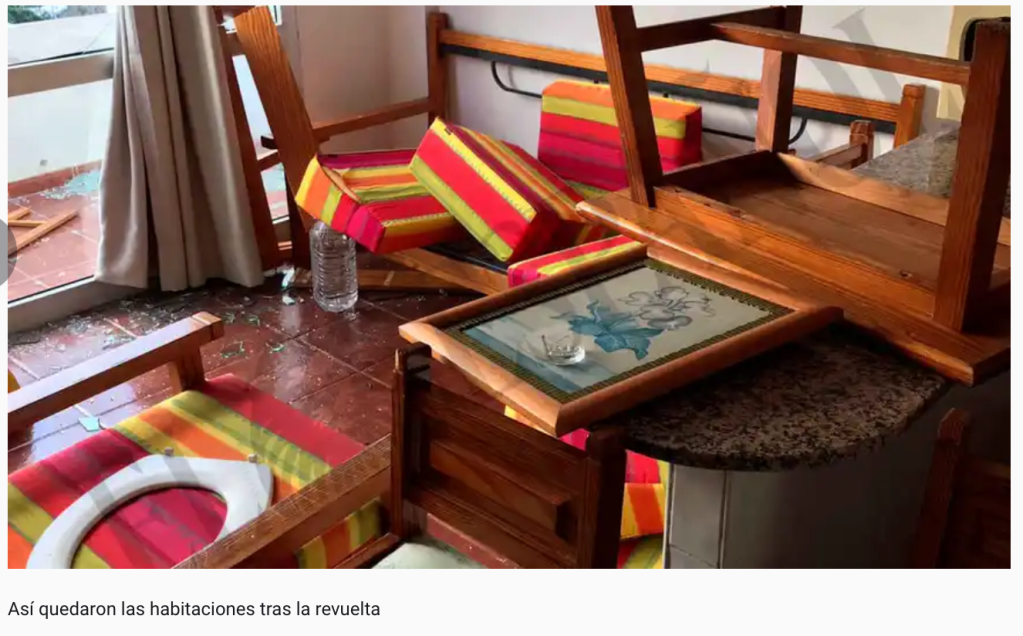 El Español, ha publicado numerosas fotos sobre destrozos en diferentes hoteles de Porto bello. Los Hoteleros ya no pueden más. Muebles destrozados, microondas volando, pedradas a los educadores y a las fuerzas de seguridad que por allí se acercaban. Peleas y agresiones.