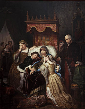 Fruto de ello fue lo que se conoce como “Farsa de Ávila” en 1465, cuando los nobles declararon rey como “Alfonso XII” a Alfonso, el heredero del trono y hermano de Isabel (se le llamó farsa porque en este acto pusieron en un trono a un muñeco que representaba al rey y lo derribaron de una patada) Pero Alfonso murió repentinamente en 1468, tras comer una trucha, probablemente envenenado por Juan Pacheco, a quien en ese momento interesaba reconciliarse con el rey (aunque los enemigos de Isabel más tarde la acusaron a ella, acusación sin fundamento, que aún hoy repiten algunos detractores de Isabel la Católica). Desde luego las crónicas de la época no dejan duda que quedó muy afectada por la muerte de su hermano menor, al que quería mucho. Por si fuera poco, Isabel ya sufría otra tragedia familiar, la primera de las muchas que iba a padecer, ya que su madre Isabel de Portugal, se había sumergido en la locura por celos patológicos (el mismo problema que heredaría su nieta, Juana la Loca, hija de Isabel). Así pues, Isabel la Católica, como ha señalado algún historiador, fue hija y madre de loca.