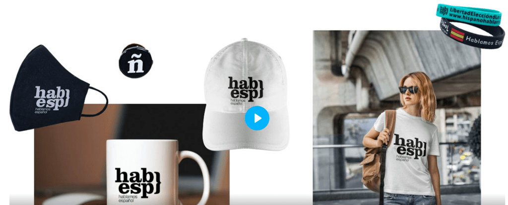 «Hablamos español» ha estrenado su tienda on line, con camisetas, gorras, tazas, etc. La intención es que con los beneficios se podrán costear costear más juicios y tener más medios para defender los derechos de los hispanohablantes.