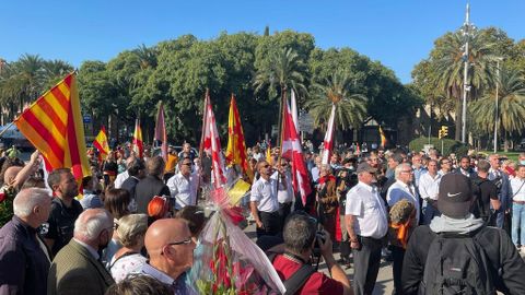 Este 12 de octubre de 2021, hemos vuelto a salir a la calle- Junto a la fundación Denaes y otras asociaciones que se han sumado al acto, SOMATEMPS ha organizado por segundo año, un acto especial de homenaje a los caídos de ultramar, y ofrenda floral. El sacerdote Custodio Ballester ha rezado el responso. Posteriormente en los parlamentos han estado a cargo de Alicia Tomás (por las asociaciones cívicas), Javier Barraycoa (por SOMATEMPS) e Iván Vélez (por DENAES). También han participado en el homenaje Caballeros legionarios veteranos. Varios centenares de manidestantes nos han acompañado en esteíntimo homenaje. Tras la ofrenda floral han continuado los festejos con una bajada por el Paseo de Gracia en manifestación hasta la plaza Cataluña, donde ha concluido la celebración de la festividad de la Hispanidad.