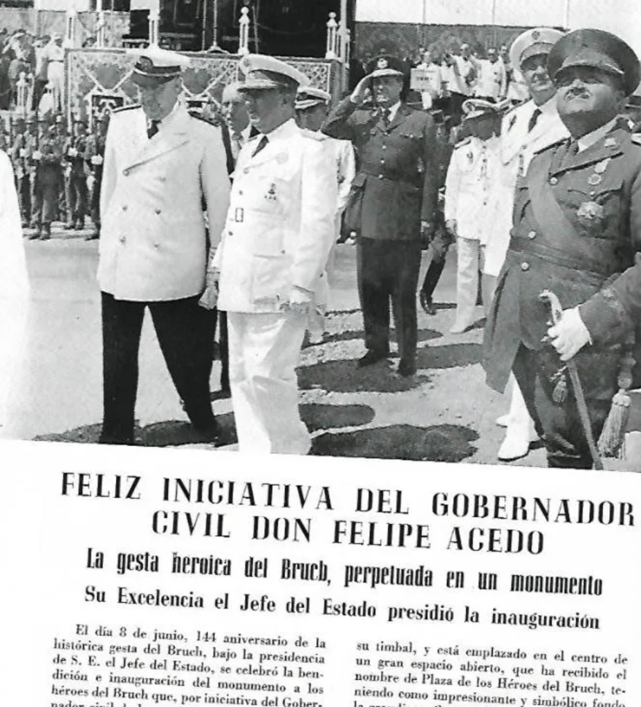 2.- Franco está presente en la inauguración del monumento homenaje a la gesta heroica del Bruch, obra del escultor catalán del escultor Frederic Marès (Sí el del famoso museo Marés)