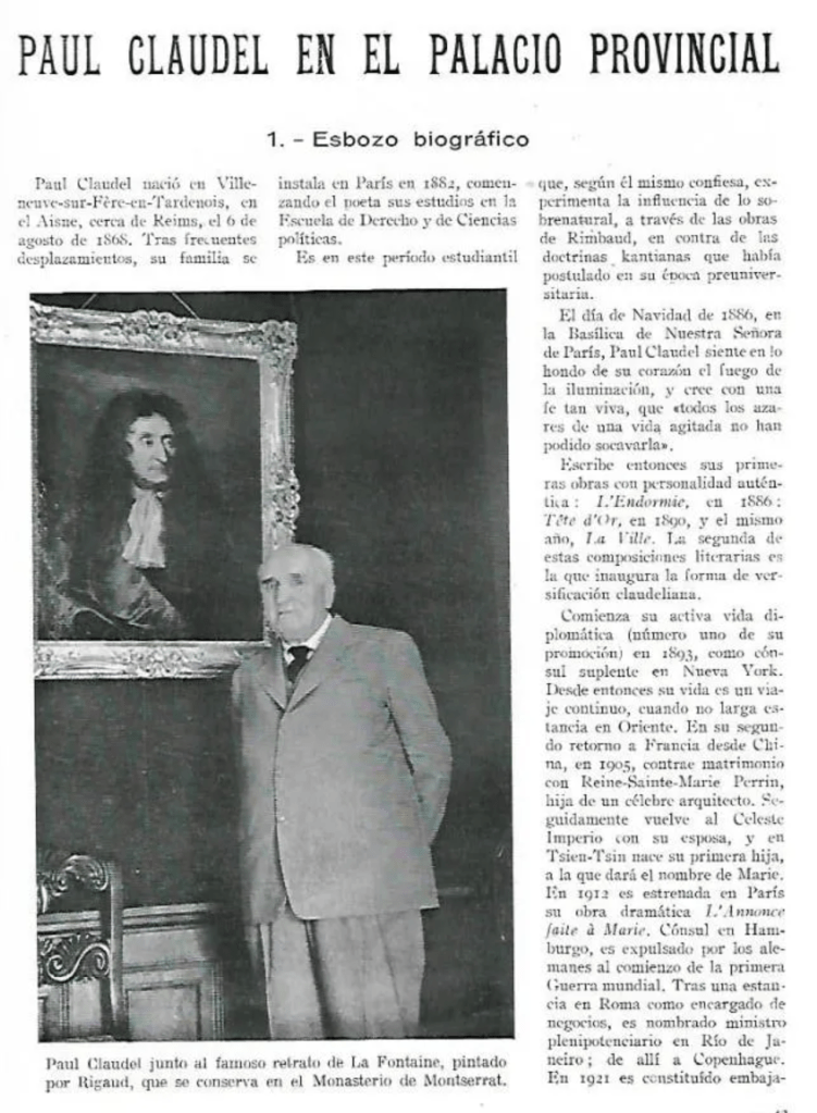 3.- El famoso diplomático, escritos y poeta Paul Claudel en Barcelona.