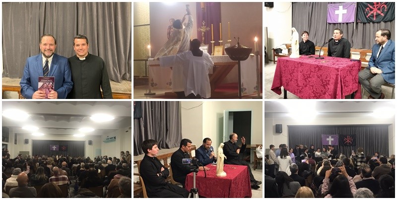 Tras llevar unos días en la Madre Patria y peregrinar a lugares tan emblemáticos como el Valle de los Caídos y la Basílica del Pilar llegó a tierras catalanas acompañado de un numeroso grupo de jóvenes de Argentina, que emulando a los chicos del coro, cantaban como los ángeles. Tras llegar en coche a la parroquia, salió a recibirle el párroco, Padre Antonio Gómez Mir, entre un buen número de fieles. El Padre Javier venía también acompañado del Padre Pablo Pich, eficaz guía y eximio anfitrión en la catalana terra. Entre los asistentes destacó la presencia del ex ministro Jorge Fernández Díaz, entrevistado por el Padre sobre los secretos de Fátima, vídeo que está a punto de alcanzar las 200.000 visualizaciones. No se pierdan el vídeo en este link.