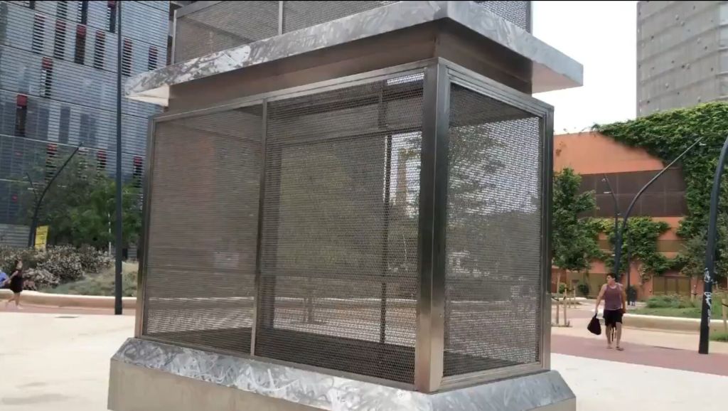 Para encerrarse y que te vean, «Escultura» culada en uno de los jardines del barrio de Sant Martí