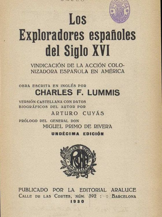 Charles Fletcher Lummis un reconocido periodista y un historiador hispanista de la universidad Harvard. Defensor de los amerindios y de la influencia cultural española en territorio de América del Norte. Lummis era esencialmente un antropólogo de campo y no ponía en valor algo que el no pudiera verificar personalmente. Sus elogios a la conquista española a veces rozan la apologética.