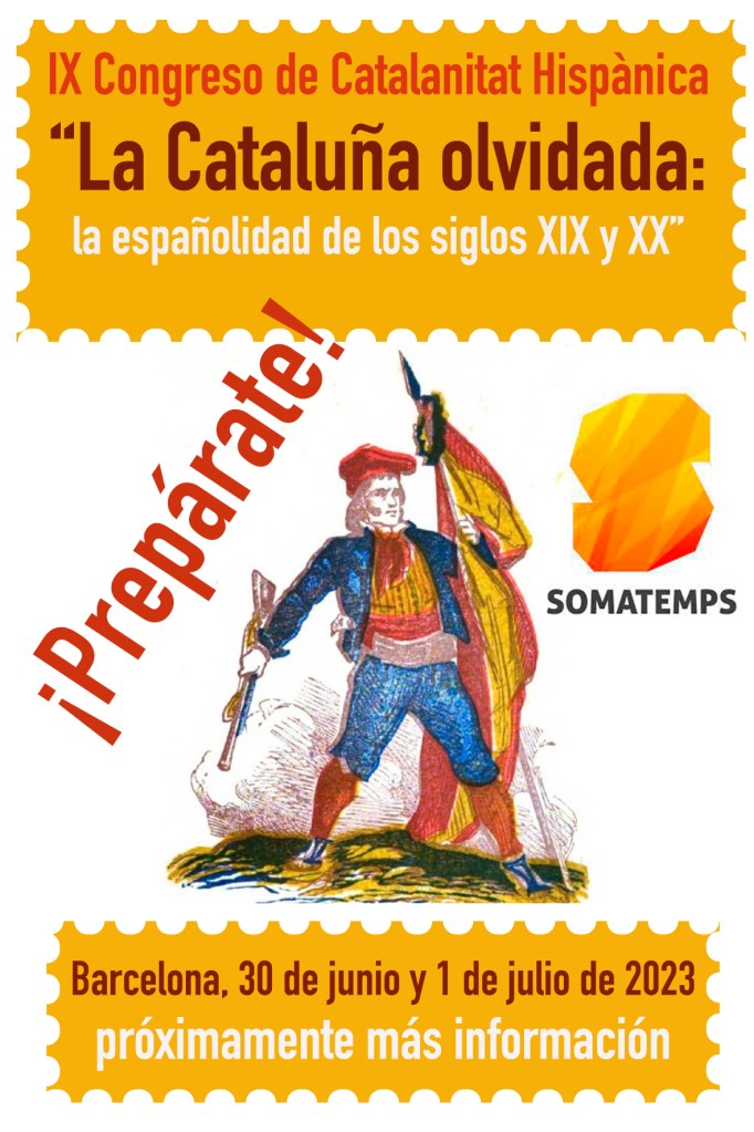 ¡PREPÁRATE!: IX Congreso de Catalanitat Hispànica, 30 de junio y 1 de julio de 2023 Por Somatemps el 14 mayo, 2023 • ( 0 ) Comparte esto: Haz clic para compartir en X (Se abre en una ventana nueva) X Haz clic para compartir en Telegram (Se abre en una ventana nueva) Telegram Haz clic para enviar un enlace por correo electrónico a un amigo (Se abre en una ventana nueva) Correo electrónico Haz clic para compartir en Facebook (Se abre en una ventana nueva) Facebook Haz clic para compartir en WhatsApp (Se abre en una ventana nueva) WhatsApp Haz clic para compartir en LinkedIn (Se abre en una ventana nueva) LinkedIn Haz clic para imprimir (Se abre en una ventana nueva) Imprimir Me gusta Cargando...‹ Guardia Civil y la Policía Nacional: «nos quieren echar de Cataluña»MUNDO AL REVÉS: Los mossos defiende a los okupas de Gelida (BCN) de los indignados vecinos ›Categorías:ACTIVIDADES