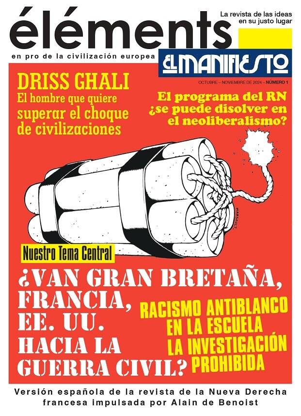 Cincuenta años lleva publicándose Éléments, el buque insignia de la Nouvelle Droite francesa, y veinte años lleva publicándose entre nosotros El Manifiesto. Para celebrar por todo lo alto nuestro aniversario, nos hemos puesto en la cabeza una quijotesca idea: traducir y publicar en papel (y en PDF, pensando en nuestros amigos de Hispanoamérica) la revista Éléments, que en estos cincuenta años se ha ganado, más allá de la pugna propiamente ideológica, un acreditado prestigio en el mundo de las ideas y de la acción.
