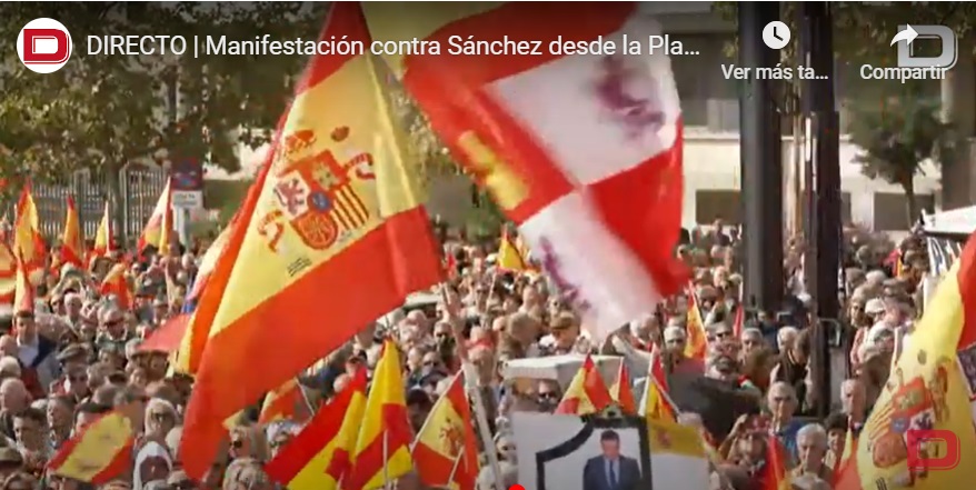 La sociedad civil se planta hoy contra Sánchez y convoca a todos los españoles a las 12 h en Plaza de Castilla. Intervienen distintos representantes de organizaciones cívicas en defensa de la democracia y la Constitución Española, asimismo se espera la intervención de María Corina Machado.