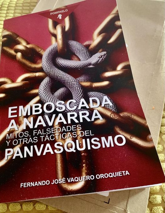 De cómo Navarra y los navarros —y las navarras— han ido mudando el escudo inmemorial del antiguo reino por una bandera inventada hace ciento y pico de años por un perturbado mental de apellido Arana, se encarga de estudiarlo Fernando José Vaquero Oroquieta en este libro, una obra monumental, sistemática, llena de erudición y escrita con inusual amenidad, que nos ilustra maravillosamente sobre el largo recorrido hacia la ignominia: los mitos panvasquistas, las falsificaciones históricas, el espejismo sentimental y la degradación democrática que está convirtiendo a una región fusionada vigorosamente con la historia de España en una especie de sucursal vasca antipática y servil, sujeta a los intereses de la oligarquía euskalduna separatista y al expolio moral de los amigos de ETA. Navarra necesita intelectuales como Vaquero Oroquieta y libros como este. Echadles una mano porque también necesitan las ayuda de todos los españoles.